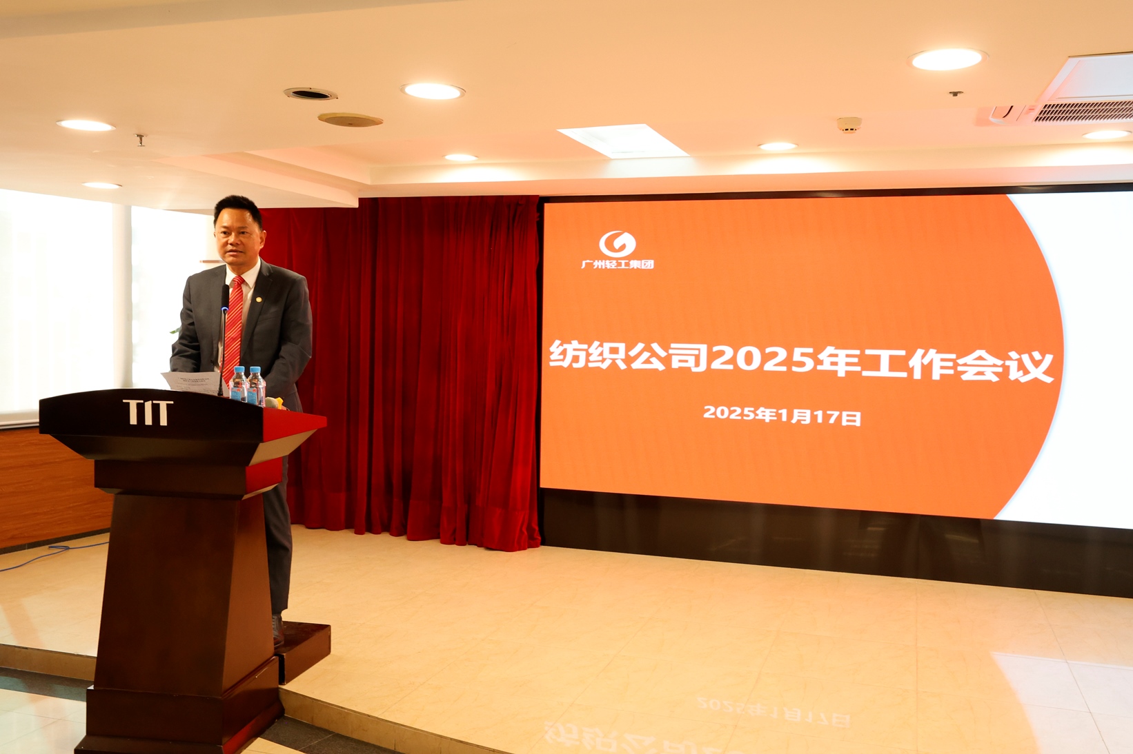 1月17日下午,紡織公司2025年工作會議在廣德大廈15樓禮堂召開。會議由公司副總經理關勇主持。廣州輕工集團副總經理陳家園出席并講話。